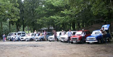 記念撮影用に整列しました。メルセデスキャンピングカーとキャトル8台。圧巻です。のどかな風景によく似合いますな。