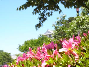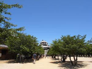 さて上に到着しました。が、天守閣は結構な距離を登っていかないといけません。お城ですからね。 すっごい天気がよくて帽子をおいてきたことを後悔しました。二日酔いで脱水気味なのに(苦笑)。 のんびりと写真撮影を楽しみながら登っていくと徐々に城郭が姿を現します。 地元熊本城と比べると石垣がさらに高いような気がします。まぁ熊本城は武者返しですから負けてません! |